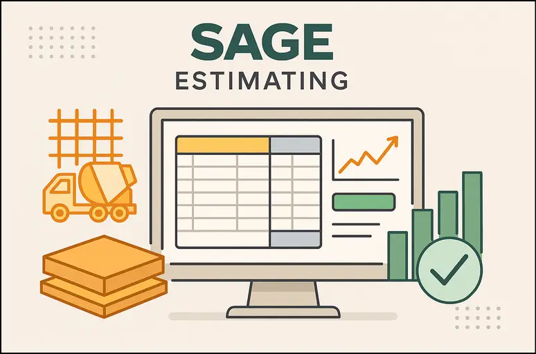 Sage Estimating swaps manual line-item slog for assemblies. Drop a 2,000-sq-ft slab, and the software autoloads concrete, rebar, formwork, and crew hours at today’s rates. Contractors like W.M. Schlosser says a task that took four hours in Excel now takes 20 minutes in Sage, an 85 percent time cut. Jordison Construction trimmed bid prep to one-third of the previous time and credits the speed with winning more work.